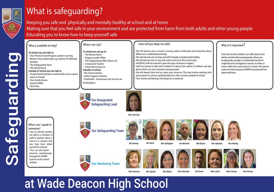 Wade Deacon High School is committed to safeguarding and promoting the health, safety and well-being of every student. We expect all staff, governors and volunteers to share this commitment.